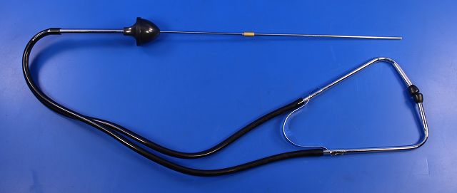 Eine etwas professionelleres Werkzeug zur Detektion der Geräuschquelle ist ein mechanisches Stethoskop ähnlich wie beim Arzt. Die mechanischen Stethoskope sind mit einer langen Spitze ausgestattetet, die auf die abzuhörenden Baugruppe gehalten werden, wie auf der untenstehenden Abbildung ersichtlich ist. Das Nadelende erzeugt über eine Membran einen Luftschall, der über abgehende Schläuche und Bügel zu den Ohren geführt wird. Der große Vorteil ist neben der Verstärkung die bessere Wahrnehmung durch den Kopfhörer durch die Ausblendung des Umgebungslärms.
