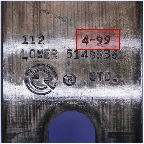 Monat und Jahreszahl - (siehe untenstehende Abbildung einer Pleuellagerschale- Herstellungsdatum 04/1999)